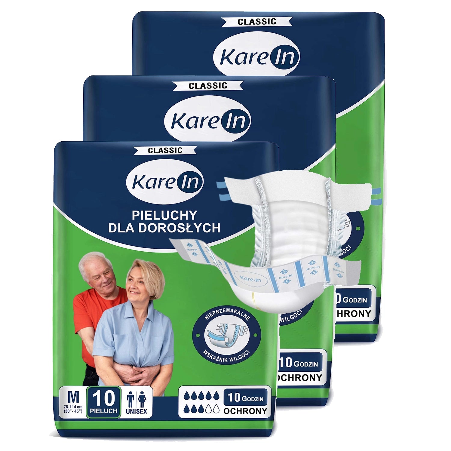 30 szt. - Pieluchy dla dorosłych (do 10h ochrony) - KAREIN Classic