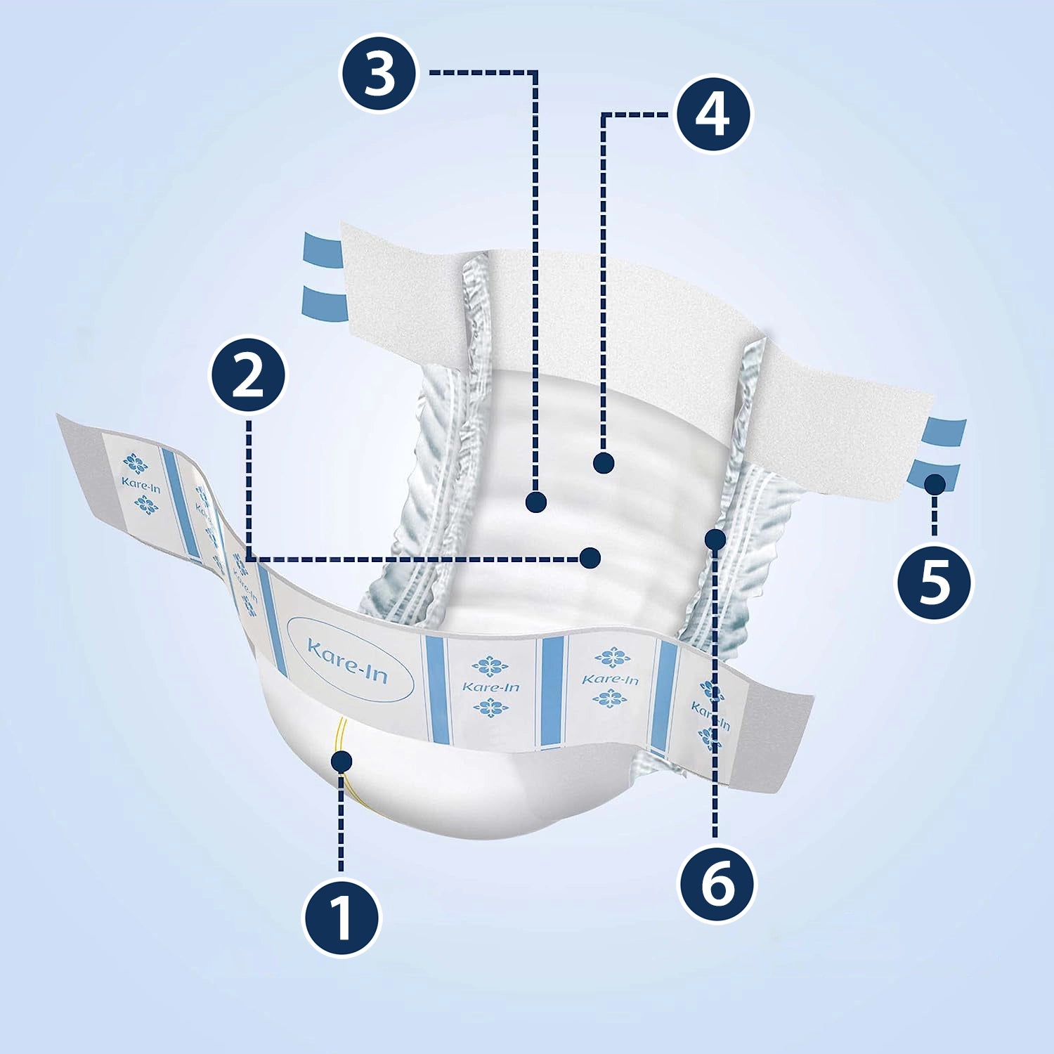 Pieluchy KareIn Classic to synonim komfortu i niezawodności, zapewniając aż do 10 godzin ochrony. Pieluchy dla dorosłych są zaprojektowane, aby zapewnić maksymalną absorpcję i kontrolę nad nieprzyjemnymi zapachami, dzięki zastosowaniu absorbentnego rdzenia żelowego. Unikalny prosty kanał wewnętrzny przyspiesza dystrybucję płynów, zwiększając efektywność wchłaniania.