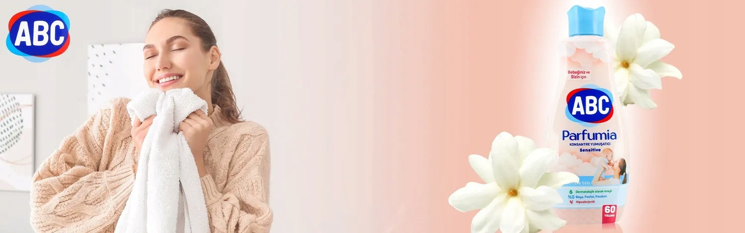 ABC Sensitive to coś więcej niż zwykły płyn do płukania. To subtelna przyjemność noszenia ubrań pachnących jak z ekskluzywnego butiku. Poczuj różnicę od pierwszego prania!