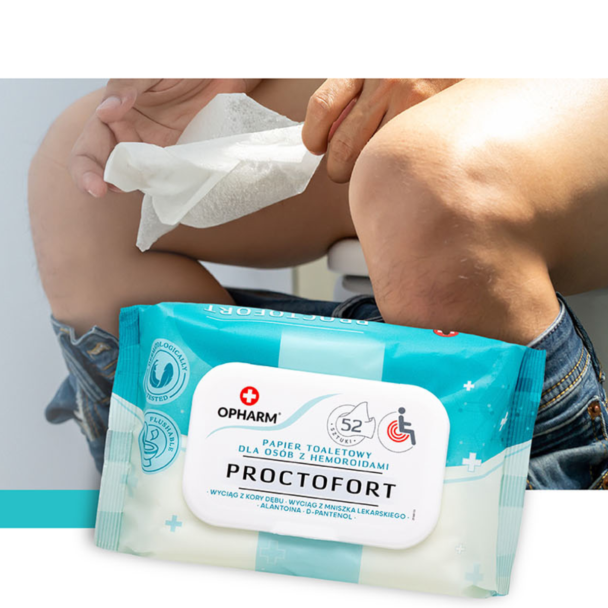 Opharm Proctofort to innowacyjny nawilżany papier toaletowy, stworzony z myślą o osobach borykających się z hemoroidami, podrażnieniami i swędzeniem. Jego delikatna formuła skutecznie oczyszcza, jednocześnie wspomagając regenerację skóry i przynosząc ulgę w dyskomforcie. Wykonany z biodegradowalnej włókniny, jest w pełni spłukiwalny w toalecie, co czyni go wygodnym i ekologicznym rozwiązaniem na co dzień.
