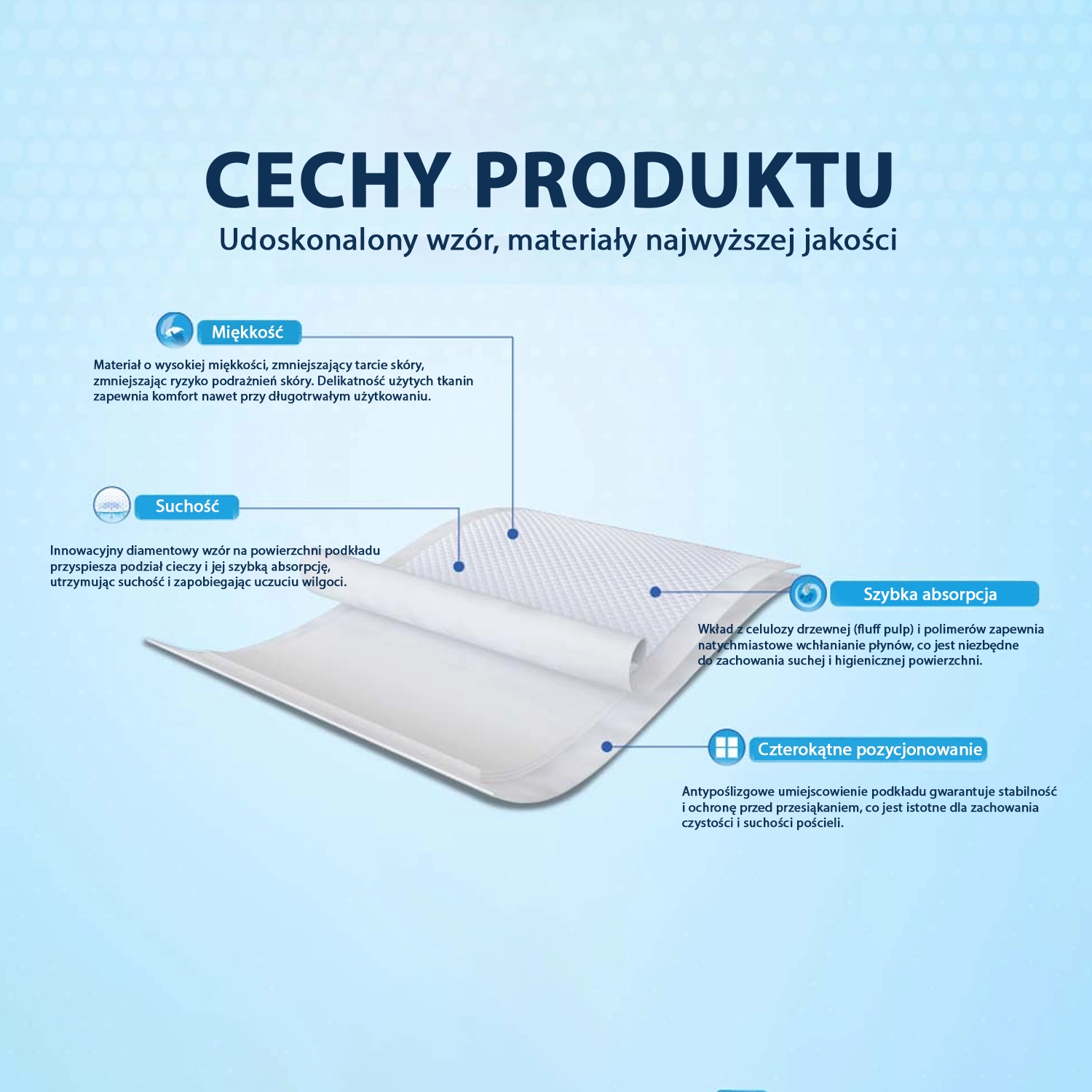 - Czterokątne pozycjonowanie - Antypoślizgowe umiejscowienie podkładu gwarantuje stabilność i ochronę przed przesiąkaniem, co jest istotne dla zachowania czystości i suchości pościeli