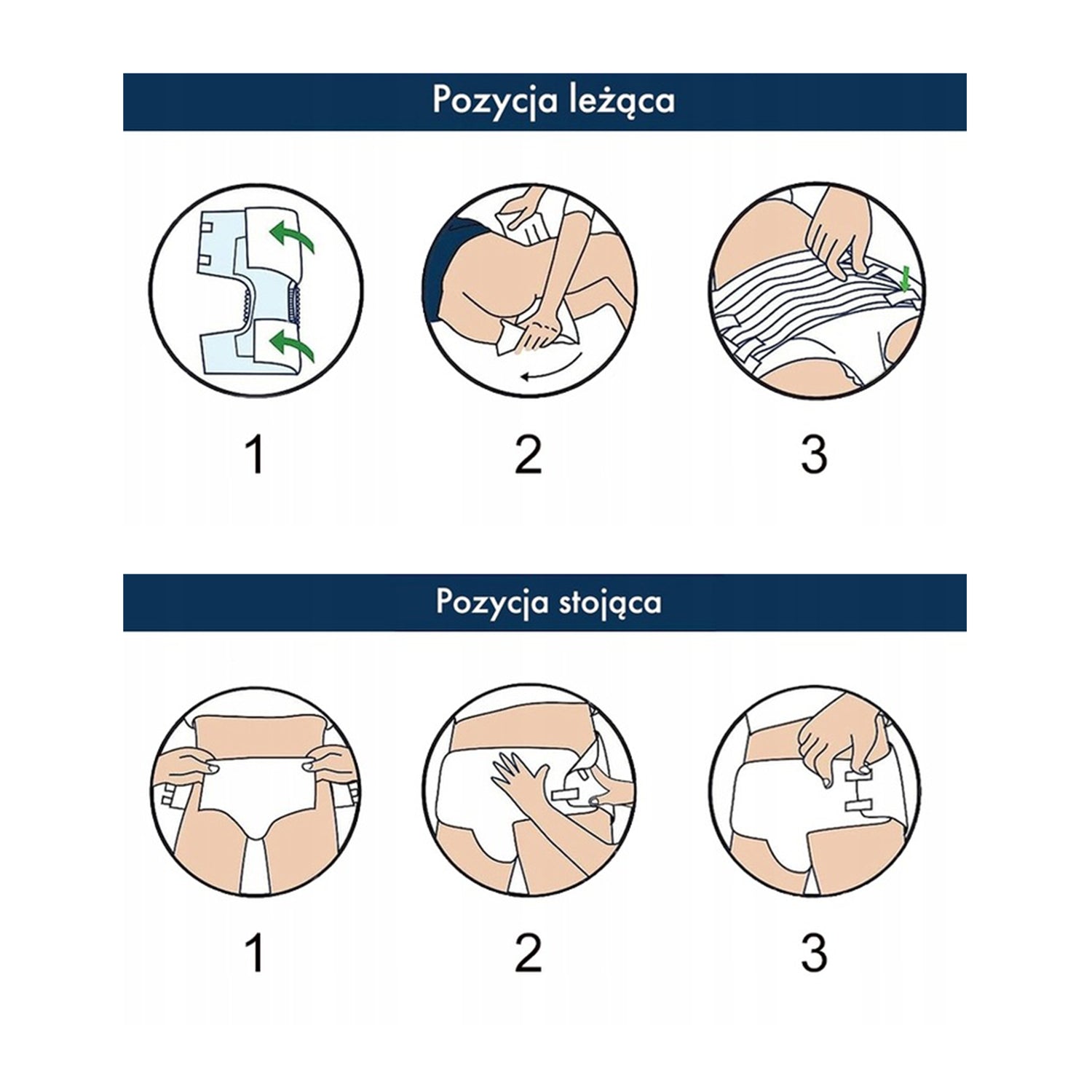 Instrukcja zakładania pieluchy dla pozycji leżącej: